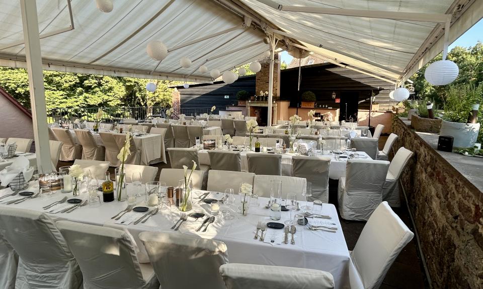 Die großzügige Clubterrasse mit Sonnenmarkise bietet Platz für bis zu 120 Personen und ist in der Sommersaison das Herzstück unserer Gastronomie. Hier genießen Sie den Blick ins Grüne, lassen eine Golfrunde entspannt ausklingen oder treffen sich einfach mit Familie und Freunden in entspannter Atmosphäre. Ob nach dem Turnier, zum Kaffee am Nachmittag oder zum Dinner bei Sonnenuntergang – die Terrasse lädt zu jeder Tageszeit zum Verweilen ein.